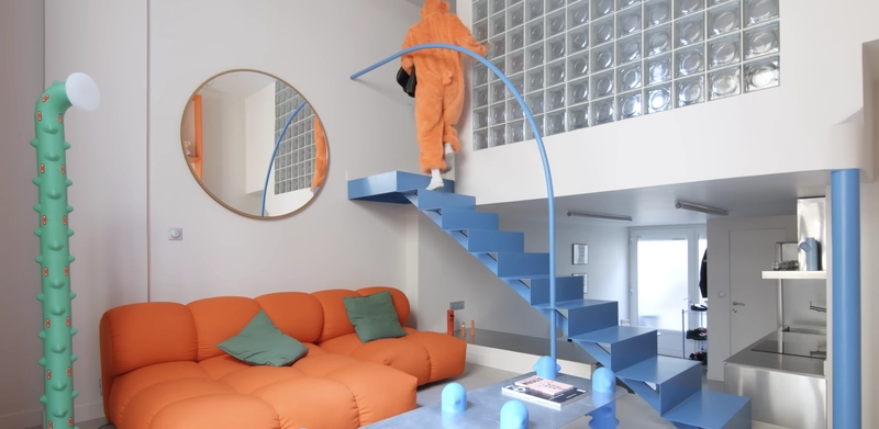 Living in Saint-Ouen, just north of Paris, I have always been captivated by the intersection of city grit and creative energy. When we first found our 45-square-meter apartment, it was clear that while it had been renovated before, it lacked “love” or any real sense of storytelling. My dream was to transform this compact, split-level space into a “cartooncore” sanctuary—a place where the boundaries between the real world and the imagination blur, much like those 90s films where 2D characters suddenly popped into our reality.